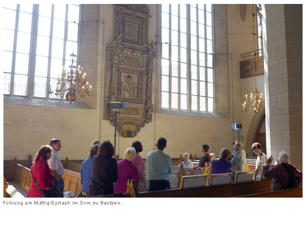 steht das Epitaph des Gregorius Mättig im Bautzener Dom St. Petri. Die acht Meter hohe kunstvoll geschnitzte Erinnerungstafel gehört zu den bedeutendsten Kunstwerken